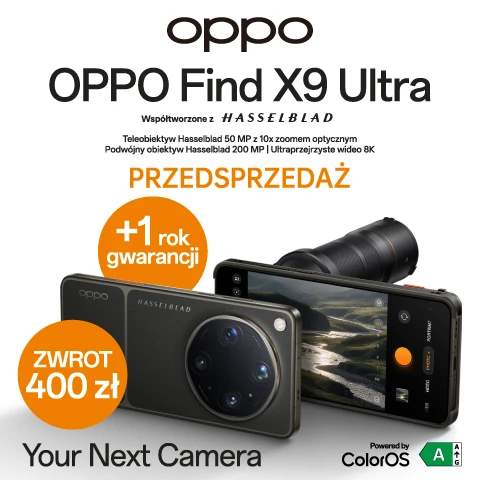 Zakupu produktu OPPO Find X9 Ultra objętego promocją „Kup smartfon OPPO Find X9 Ultra i odbierz cashabck 400” można dokonać do 13.05.2026 r. Pula zwrotów w ramach promocji jest ograniczona i wynosi 500 nagród (zwrotów). Szczegóły w Regulaminie Organizatora Loyalty Point sp. z o.o. dostępnym m.in. w sklepach RTV EURO AGD i na euro.com.pl. Zapoznaj się z regulaminem.