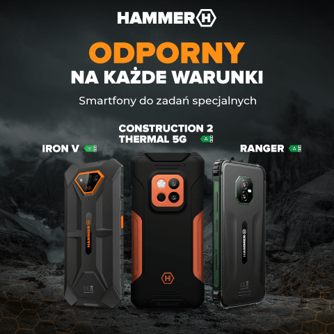 HAMMER CONSTRUCTION 2 THERMAL 5G z powodzeniem łączy w sobie funkcjonalność i pancerny charakter. Obudowa ze wzmocnieniami zapewnia odporność na wodę, pył i uderzenia, czego dowodzą najwyższe normy IP69 oraz militarna MIL-STD-810H. Smartfon posiada również takie funkcje jak kamera termowizyjna czy laserowy dalmierz, które w połączeniu z wydajną baterią 6500 mAh, zapewniają niezawodne wsparcie w codziennych zadaniach.