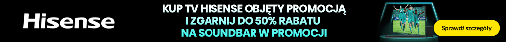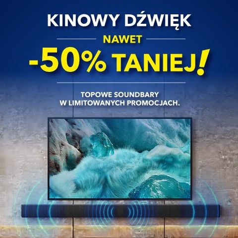 Promocja obowiązuje w sklepach RTV EURO AGD oraz na euro.com.pl (z wyłączeniem outletów) od: 05.02.2026 r . od godz. : 13:00 do: 28.02.2026 r. do godz. 23:45 lub do wcześniejszego wyczerpania się asortymentu. Obejmuje wybrane telewizory marki Hisense. Klient przy zakupie telewizora objętego promocją może nabyć wybrany soundbar z rabatem do 50%. Wysokość rabatu zależy od wybranego modelu soundabra. Szczegóły promocji, w tym zasady jej łączenia się z innymi promocjami, w Regulaminie w sklepach RTV EURO AGD i na euro.com.pl. Zapoznaj się z regulaminem.