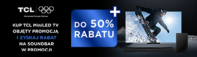 Promocja obowiązuje w sklepach RTV EURO AGD oraz na euro.com.pl (z wyłączeniem outletów) od: 12.01.2026 r. od godz. 15:00 do: 28.02.2026 r. do godz. 23.45 lub do wcześniejszego wyczerpania się asortymentu. Klient przy zakupie telewizora wskazanego w Regulaminie może nabyć Soundbar TCL Q65H 5.1 Bluetooth Dolby Atmos DTS X z 50% rabatem albo Soundbar TCL Q75H 5.1.2 Wi-Fi Bluetooth AirPlay Dolby Atmos DTS X z 25% rabatem. Szczegóły promocji, w tym zasady jej łączenia się z innymi promocjami, w Regulaminie w sklepach i na euro.com.pl. Zapoznaj się z regulaminem.