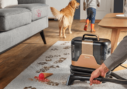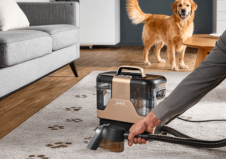 • Płyn Tefal Universal & Pet 1L (XD5320) – usuwa różnorodne plamy z tapicerki i tkanin (sofy, dywany, materace, fotele samochodowe), idealny przy zabrudzeniach po zwierzętach