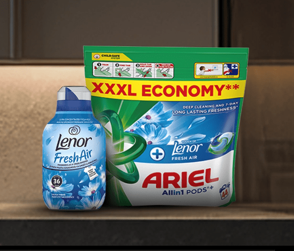 oraz 5 butelek płynu do płukania Lenor Fresh Air