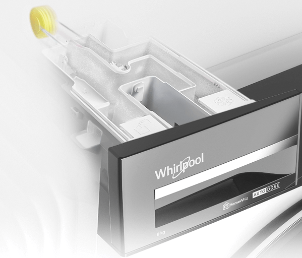 AutoDose automatycznie dopasowuje ilość detergentu do wsadu, tkaniny i zabrudzenia, zapewniając efektywność prania i oszczędność zasobów.