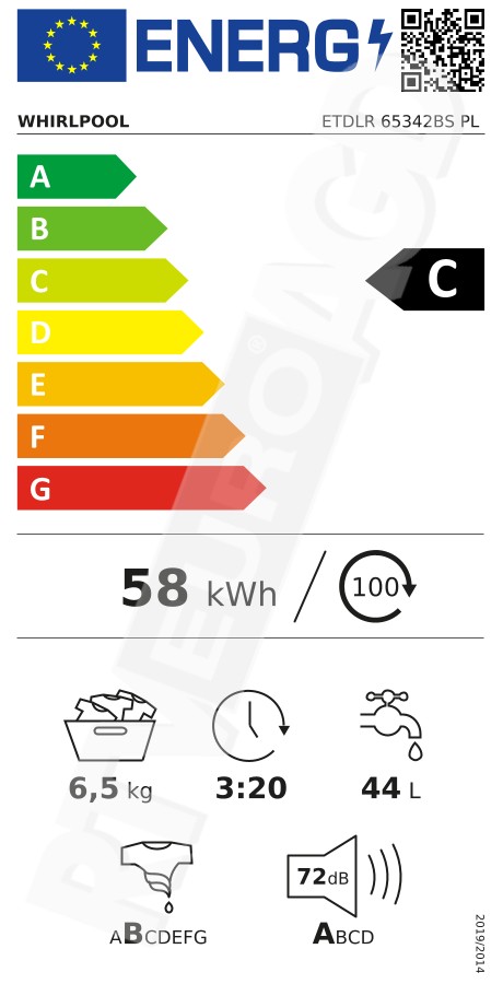 Klasa energetyczna prania: B