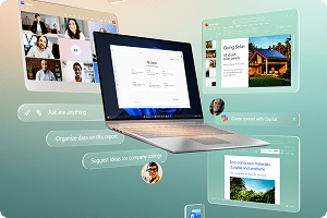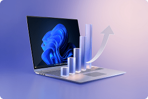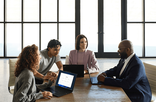 Przestarzałe urządzenia mogą spowalniać pracę. Przejdź na nowe komputery, aby przyspieszyć przepływ pracy średnio o 50%3 i skorzystać z inteligentnych funkcji oszczędzających czas, takich jak ulepszone układy przyciągania, ulepszone wideokonferencje i Microsoft 365 Copilot4.