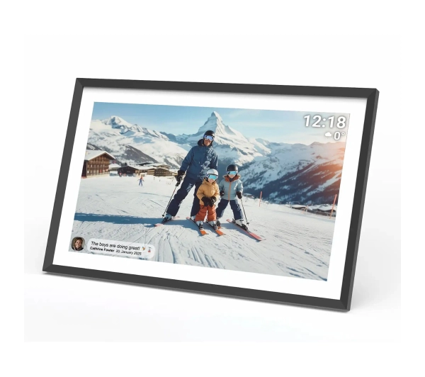 - Funkcje dodatkowe: automatyczne włączanie i wyłączanie wyświetlacza o ustawionym czasie, automatyczny czujnik dopasowujący obraz do sposobu ustawienia ramki, bezprzewodowe przesyłanie zdjęć, dynamiczny efekt podświetlenia ściany, możliwość obracania zdjęć, obsługa poprzez ekran dotykowy, odtwarzanie filmów Full HD, odtwarzanie filmów w jakości HD (720p), podświetlenie LED, prognoza pogody, przeglądanie miniatur / menedżer plików, przesyłanie zdjęć za pomocą aplikacji Frameo, różne tryby pokazu slajdów, WiFi, zegar, kalendarz, złącze USB