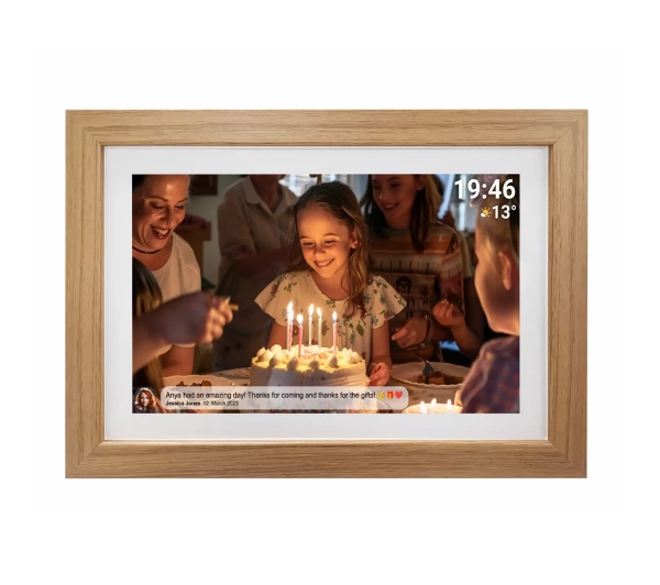 - Funkcje dodatkowe: automatyczne włączanie i wyłączanie wyświetlacza o ustawionym czasie, automatyczny czujnik dopasowujący obraz do sposobu ustawienia ramki, bezprzewodowe przesyłanie zdjęć, możliwość obracania zdjęć, obsługa poprzez ekran dotykowy, odtwarzanie filmów Full HD, odtwarzanie filmów w jakości HD (720p), podświetlenie LED, prognoza pogody, przeglądanie miniatur / menedżer plików, przesyłanie zdjęć za pomocą aplikacji Frameo, różne tryby pokazu slajdów, WiFi, zegar, kalendarz, złącze USB
