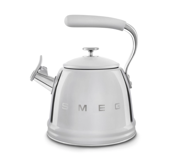 <h2>Smeg WKF01SS</h2>Czajnik Smeg WKF01SS o pojemności 2,3 litra to idealny wybór dla miłośników kuchni w stylu retro. Jego design inspirowany latami 50. przyciąga wzrok i wprowadza do wnętrza niepowtarzalny charakter, a ergonomiczna konstrukcja gwarantuje wygodę i bezpieczeństwo podczas codziennego użytkowania.Duża pojemność 2,3 l umożliwia szybkie przygotowanie gorącej wody dla kilku osóbTradycyjny gwizdek parowy sygnalizuje zagotowanie wodyZdejmowana pokrywka ułatwia napełnianie i czyszczenie czajnikaPrecyzyjny dzióbek z nasadką zapewnia bezpieczne i dokładne nalewanie wodyErgonomiczny uchwyt z silikonową powłoką zapewnia stabilny i pewny chwytKompatybilny z wszystkimi rodzajami kuchenek, w tym gazowymi, elektrycznymi, indukcyjnymi i ceramicznymi Elegancki design, który doda wyjątkowego wyglądu Twojej kuchni<h2>Poznaj czajnik Smeg WKF01SS</h2> Duża pojemnośćSmeg WKF01SS łączy elegancki design retro z praktyczną funkcjonalnością. Jego pojemność 2,3 litra sprawia, że idealnie nadaje się zarówno do codziennego użytku, jak i podczas specjalnych okazji, takich jak spotkania rodzinne czy wizyty gości. Dzięki dużej pojemności możesz zagotować wodę na kawę lub herbatę dla kilku osób jednocześnie, unikając wielokrotnego napełniania czajnika i oszczędzając cenny czas w kuchni. Gwizdek parowyPoczuj nutkę nostalgii podczas codziennego rytuału parzenia kawy lub herbaty z czajnikiem Smeg. Wyposażony w tradycyjny gwizdek parowy, czajnik wydaje przyjemny, jednostajny dźwięk, gdy woda osiąga temperaturę wrzenia. Dzięki temu sygnałowi nigdy nie przegapisz momentu zagotowania wody, a przypadkowe przypalenie czajnika zostaje skutecznie uniknięte. Połączenie stylu retro i praktycznej funkcjonalności sprawia, że Smeg WKF01SS jest idealnym wyborem do każdej kuchni. Zdejmowana pokrywkaSmeg WKF01SS został zaprojektowany z myślą o wygodzie użytkowania. Zdejmowana pokrywka pozwala szybko napełnić czajnik wodą, a także ułatwia dokładne czyszczenie wnętrza czajnika. Po zdjęciu pokrywki bez trudu umyjesz ścianki urządzenia i pozbędziesz się nagromadzonych osadów i kamienia, co zapewnia długotrwałą higienę i utrzymanie czajnika w doskonałym stanie. Nasadka z dzióbkiemCzajnik Smeg WKF01SS wyposażony jest w praktyczną nasadkę z dzióbkiem dozującym, która znacząco zmniejsza ryzyko poparzenia podczas nalewania gorącej wody do kubka czy filiżanki. Dzióbek umożliwia precyzyjne nalewanie wody, kierując strumień dokładnie do naczynia i zapobiegając przypadkowemu rozlaniu, np. podczas przenoszenia czajnika. To połączenie bezpieczeństwa i wygody użytkowania sprawia, że codzienne korzystanie z czajnika jest komfortowe i bezstresowe. Wygodny uchwytUchwyt pozostaje chłodny w dotyku nawet po zagotowaniu wody, co zapewnia bezpieczne użytkowanie nawet przy gorącym czajniku. Dodatkowo ergonomiczny uchwyt pokryty silikonową powłoką o właściwościach antypoślizgowych gwarantuje pewny i stabilny chwyt, dzięki czemu nalewanie gorącej wody jest wygodne i bezpieczne. Wszechstronne zastosowanieUrządzenie Smeg WKF01SS sprawdzi się w każdym domu, ponieważ jest kompatybilne z kuchenkami gazowymi, indukcyjnymi, elektrycznymi i ceramicznymi. Dzięki temu codzienne przygotowywanie gorących napojów staje się szybkie, wygodne i przyjemne. Rozpoznawalny designNależący do linii produktów inspirowanych estetyką lat 50., Smeg WKF01SS wyróżnia się zaokrągloną formą i chromowanymi elementami, które wprowadzają do kuchni niepowtarzalny charakter. Łączy funkcjonalność z eleganckim stylem vintage, stając się nie tylko praktycznym urządzeniem codziennego użytku, ale także oryginalnym elementem dekoracyjnym wnętrza.<h2>Zawartość opakowania Smeg WKF01SS</h2>W opakowaniu Czajnik Karta gwarancyjnaSmeg – marka godna zaufaniaKultowe projektyDesign rozpoznawalny na całym świecie Sprzęt kuchenny z włoskim rodowodemWzornictwo w duchu retro i nowoczesne technologie Szerokie zastosowanieUrządzenia testowane w prywatnych domach, restauracjach