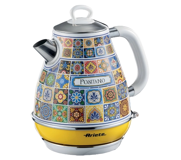 <h2>Ariete Positano 2869</h2>Wprowadź do swojej kuchni klimat śródziemnomorskiego wybrzeża! Czajnik Ariete Positano 2869 łączy włoską elegancję z trwałością i komfortem codziennego użytkowania. Dzięki dużej pojemności i optymalnej mocy w kilka chwil zagotuje wodę dla całej rodziny.Dla estetów - unikatowy design inspirowany urokiem włoskiego wybrzeża AmalfiPojemność 1,7 l i moc 200 W pozwalają szybko przygotować wodę na gorące napoje dla kilku osóbObrotowa podstawa ułatwia korzystanie z czajnika z dowolnej pozycjiZmywalny filtr antywapienny zatrzymuje osady i zanieczyszczenia, które pogarszają jakość wodyUchwyt typu soft touch świetnie leży w dłoni, a precyzyjny wskaźnik pozwala kontrolować proces nalewania wody<h2>Poznaj czajnik Ariete Positano 2869</h2> Śródziemnomorski designAriete Positano 2869 to coś więcej niż zwykły czajnik. To małe dzieło sztuki, które może znaleźć się w twojej kuchni! Jego design został zainspirowany radosnymi, pastelowymi barwami Amalfi, dzięki czemu parzenie porannej kawy czy herbaty staje się wyjątkowym doświadczeniem, a czajnik pięknie prezentuje się na blacie. Czajnik dla całej rodzinyCzajnik o pojemności 1,7 l to dobry wybór dla kilkuosobowej rodziny oraz wszystkich, którzy lubią przyjmować gości. Za jednym razem możesz przygotować gorącą wodę na 7-8 filiżanek kawy czy herbaty. Dzięki mocy 200 W woda uzyska odpowiednią temperaturę w mgnieniu oka! Obrotowa podstawaPostaw na wygodę w swojej kuchni! Czajnik Ariete Positano 2869 został stworzony tak, aby zapewniać ci komfort podczas codziennego użytkowania. Jednym z elementów, który zwiększa jego funkcjonalność, jest obrotowa podstawa. Możesz wygodnie odstawić dzbanek na jego miejsce z dowolnej pozycji - bez względu na to, czy jesteś prawo-, czy leworęczny. Filtr antywapiennyWybierz czajnik z filtrem i ciesz się perfekcyjną czystością i nienagannym smakiem wody. Prezentowany model został wyposażony w zmywalny filtr antywapienny, który skutecznie wyłapuje z wody osady i cząsteczki wapnia. Aby zadbać o higienę wody, filtr możesz w dowolnej chwili wyjąć i wyczyścić. Dopracowany w każdym detaluAriete Positano 2869 zmienia zwykłe gotowanie wody w wyjątkowy rytuał. Jego konstrukcja została dopracowana w najmniejszym szczególe. Wyprofilowany uchwyt typu soft touch stabilnie leży w dłoni i sprawia, że korzystanie z tego czajnika jest prawdziwą przyjemnością. Dodatkowo wskaźnik poziomu wody pozwala zagotować jej odpowiednią ilość na gorące napoje dla siebie, rodziny i gości. Gotowanie we włoskim styluCzajnik Ariete Positano 2869 wniesie odrobinę magii do twojej codzienności! Urządzenie należy do linii Positano, która wyróżnia się mozaikowymi wzorami i nasyconymi barwami oddającymi klimat włoskiego wybrzeża. W ofercie Ariete znajdziesz także inne sprzęty przydatne w kuchni, takie jak toster, blender czy robot planetarny.<h2>Zawartość opakowania Ariete Positano 2869</h2>W opakowaniu Czajnik Filtr Instrukcja obsługi Karta gwarancyjnaAriete – marka godna zaufaniaWłoski designMarka założona we FlorencjiOgromna popularnośćZnany producent artykułów gospodarstwa domowego w EuropieDziesiątki lat doświadczeniaProdukty marki obecne na rynku od 1964 roku