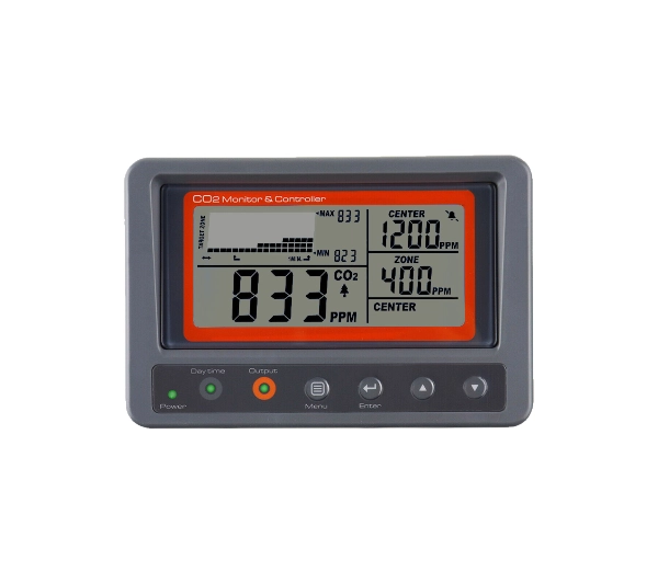 AZ 7530 to prosty w użyciu kontroler CO2 umożliwiający łatwe monitorowanie i kontrolę jakości powietrza w przestrzeniach zamkniętych, w których przebywają ludzie. Sprawdzi się też do pomiaru i utrzymywania poziomu dwutlenku węgla w szklarni lub pomieszczeniu do uprawy.<p>Wbudowany czujnik NDIR (Non-Dispersive Infrared) pozwala na precyzyjny pomiar poziomu CO2 w czasie rzeczywistym. Wyniki przedstawiane są na dużym, cyfrowym wyświetlaczu ciekłokrystalicznym, z dodatkowym wykresem graficznym pokazującym trendy CO2. Ekran posiada funkcję podświetlenia wskazań ułatwiającą odczyt w przypadku pomiarów dokonywanych w nocy lub przy niskim natężeniu oświetlenia.</p><p>Urządzenie pracuje w trybie pomiaru wartości bieżących, ale pozwala również na przywołanie wartości minimalnych / maksymalnych (funkcja MIN i MAX). Dwa tryby pracy: uprawny i ludzki, pozwalają na optymalizację ilości dwutlenku węgla, np. zmniejszenie stężenia w trybie ludzkim lub zwiększenie w trybie uprawnym.</p><p>Użytkownik ma możliwość ustawienia żądanego zakresu CO2 określając zakres 400 ppm po obu stronach żądanego poziomu docelowego. Jeśli poziom docelowy wynosi 1200 ppm to limity będą wynosić odpowiednio: dolny - 1000 ppm; górny - 1400 ppm. W przypadku przekroczenia poziomów zostanie włączona odpowiednia sygnalizacja oraz załączy lub wyłączy się wyjście stykowe. Wspomniana funkcja sterowania przez wyjście stykowe, pozwala na zarządzanie zewnętrznymi urządzeniami (np. wentylatorami, generatorami CO2 itp.). </p><p>Kontroler posiada funkcję automatycznej kalibracji czujnika CO2. Dużą zaletą jest również sonda zewnętrzna z kablem o długości 4.5 metra oraz czujnikiem światła wykrywającym porę (dzień/noc), co jest szczególnie przydatne w przypadku wykorzystania w miejscach upraw roślin.</p><p>AZ 7530 jest zasilany za pośrednictwem zasilacza sieciowego 100-240V AC (Alternating Current), 50/60HZ / 8.7V DC (Direct Current).</p><p>ZASTOSOWANIEKontroler AZ 7530 został zaprojektowany do sprawdzania jakości powietrza oraz sterowania innymi podłączonymi do systemu urządzeniami, takimi jak generator CO2 lub wentylator. Może być stosowany w ogrodnictwie, szklarniach, hydroponice, ekologicznym ogrodnictwie wewnętrznym, pieczarkarniach i przemyśle oświetleniowym. Sprawdzi się również do użytku w przestrzeniach takich jak: biura, szpitale, szkoły, dworce, budynki mieszkalne itp.</p><p>ZALETY</p><ul> <li>Dwa urządzenia w jednym: monitor i kontroler CO2</li> <li>Duży ekran ciekłokrystaliczny z podświetleniem</li> <li>Wyświetlanie parametrów w czasie rzeczywistym</li> <li>Automatyczne wykrywanie dzień / noc w celu obejścia kontroli CO2</li> <li>Programowalne żądane poziomy CO2 i alarmy</li> <li>Dwa tryby pracy: tryb uprawny i tryb ludzki</li> <li>Łatwy w użyciu system plug and play</li> <li>Bezproblemowe dodawanie do istniejących pomieszczeń do uprawy bez większej ingerencji w istniejące wyposażenie</li> <li>Długi kabel do czujnika CO2 (4.5 m)</li> <li>Automatyczna kalibracja</li> <li>Możliwość montażu na ścianie</li> <li>Ergonomiczna i estetyczna obudowa</li></ul><p> </p>