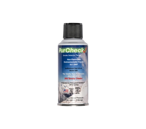 <p>Aerozol testowy PurCheck® 30S przeznaczony do sprawdzania optycznych i jonizacyjnych czujek dymu.</p><p>Zapewnia pełną zgodność przeprowadzanych testów dla czujek wyprodukowanych zgodnie z normą UL217, 268 i ULC531 & 527 (oraz równoważnych norm). Nie powoduje korozji elementów z tworzyw sztucznych, nie pozostawia plam oraz nie zanieczyszcza czujek. Jest jedynym dostępnym na rynku całkowicie niepalnym i nieszkodliwym dla środowiska aerozolem. Stosowany zgodnie z zaleceniami instrukcji obsługi jest bezpieczny dla ludzi i zwierząt.</p><p>Wykonanie testu jest wyjątkowo proste i nie wymaga użycia dodatkowego osprzętu. Z odległości około 0.6 – 1.2 m od komory czujki należy rozpylić aerozol przez 1 – 2 sekundy. Sygnalizacja alarmowa czujki powinna włączyć się w ciągu 1 – 10 sekund. Jeżeli alarm nie włączył się, należy powtórzyć próbę.</p><p>PurCheck® 30S odznacza się bardzo wysoką wydajnością – jedna puszka wystarcza na wykonanie ponad 300 testów.ZASTOSOWANIEPolecany dla służb technicznych, zakładów kominiarskich, firm zajmujących się montażem i konserwacją czujek dymowych oraz osób prywatnych posiadających wyżej wymienione urządzenia.</p><p>ZALETY</p><ul> <li>Bardzo wysoka wydajność – ponad 300 testów z jednej puszki!</li> <li>Prosty i wygodny sposób użycia</li> <li>Bezpieczny w użyciu dla ludzi i zwierząt</li> <li>Nie powoduje korozji elementów czujki</li> <li>Możliwość wykonania testu bez użycia dodatkowego osprzętu</li> <li>Całkowicie niepalny i nieszkodliwy dla środowiska aerozol</li> <li>Spełnia wymagania NFPA 72 i międzynarodowego kodeksu przeciwpożarowego</li> <li>100% zgodny z wymaganiami EPA, nie zawiera HFC i CFC</li> <li>Nie zawiera parafiny</li></ul><p> </p><table> <thead> <tr> <td colspan="2"> <p>Informacje o produkcie</p> </td> </tr> </thead> <tbody> <tr> <td> <p>Przeznaczenie</p> </td> <td> <p>Czujniki dymu w technologii optycznej i jonizacyjnej</p> </td> </tr> <tr> <td> <p>Sposób wykonania testu</p> </td> <td> <p>Podanie próbki aerozolu testowego na czujkę za pomocą rozpylacza</p> </td> </tr> <tr> <td> <p>Czas dozowania</p> </td> <td> <p>1 – 2 sek.</p> </td> </tr> <tr> <td> <p>Odległość pomiaru</p> </td> <td> <p>0.6 – 1.2 m</p> </td> </tr> <tr> <td> <p>Wydajność</p> </td> <td> <p>Ok. 300 testów</p> </td> </tr> <tr> <td> <p>Opakowanie</p> </td> <td> <p>Puszka aluminiowa</p> </td> </tr> <tr> <td> <p>Możliwość napełniania</p> </td> <td> <p>Nie</p> </td> </tr> </tbody></table><p> </p>