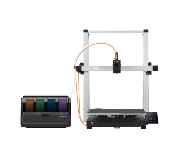 <h2>Drukarka 3D Anycubic Kobra 3 Max Combo</h2><p>Anycubic Kobra 3 Max Combo to zaawansowana drukarka 3D, zaprojektowana dla osób, które potrzebują dużej przestrzeni roboczej, wysokiej precyzji i szybkiej realizacji projektów. Nowoczesne technologie i inteligentne funkcje umożliwiają tworzenie nawet najbardziej skomplikowanych modeli, niezależnie od ich wielkości. Wersja Combo rozszerza możliwości urządzenia o druk wielokolorowy w 8 barwach, co pozwala na jeszcze bardziej kreatywne i złożone projekty.</p> <h2>Wielokolorowy druk bez wysiłku</h2><p>System ACE Pro to serce wersji Combo, umożliwiające jednoczesne drukowanie w aż 8 kolorach (przy 2 systemach ACE Pro) bez potrzeby ręcznej zmiany filamentu. Automatyczne zarządzanie materiałem sprawia, że przejścia między kolorami są płynne i precyzyjne. Dodatkowo moduł ACE Pro pełni rolę zaawansowanego pojemnika na filamenty, chroniąc je przed wilgocią dzięki wbudowanemu systemowi suszenia. To rozwiązanie nie tylko poprawia jakość wydruków, ale także minimalizuje ryzyko problemów podczas pracy.</p> <h2>Obszerny obszar roboczy dla dużych projektów</h2><p>Anycubic Kobra 3 Max oferuje przestrzeń roboczą o wymiarach 420 x 420 x 500 mm, co pozwala na realizację wielkoformatowych modeli w jednym cyklu. W ten sposób możesz tworzyć prototypy, elementy dekoracyjne czy modele architektoniczne bez konieczności łączenia mniejszych części po wydruku.</p> <h2>Szybkość i wydajność na najwyższym poziomie</h2><p>Drukarka osiąga maksymalną prędkość druku 600 mm/s, a przyspieszenie do 10 000 mm/s² znacznie skraca czas realizacji projektów. Automatyczne poziomowanie stołu LeviQ 3.0 gwarantuje idealne ustawienie platformy, a technologia Anti-Step Lost zapobiega przeskakiwaniu warstw, co przekłada się na stabilność i precyzję każdego wydruku.</p> <h2>Precyzja druku w wysokich temperaturach</h2><p>Drukarka została wyposażona w szybkozłączkę Hotend, umożliwiającą drukowanie w temperaturze do 300°C, co pozwala na pracę z różnorodnymi filamentami. Płyta grzewcza nagrzewa się do 90°C w zaledwie 125 sekund, co skraca czas przygotowania do pracy. Dodatkowo system automatycznego cięcia filamentu oraz mechanizm przeciwdziałający jego zaplątaniu zapewniają płynność i niezawodność pracy.</p> <h2>Zaawansowane systemy stabilizacji</h2><p>Aby zapewnić maksymalną precyzję, drukarka wykorzystuje technologie kompensacji rezonansu i dynamicznej kontroli przepływu. Dwa silniki osi Y z podwójnymi wałami rdzeniowymi oraz łożyskami SG15 eliminują problemy z osiowością warstw, a podwójna śruba osi Z zwiększa stabilność konstrukcji, gwarantując doskonałą jakość nawet przy długotrwałych wydrukach.</p> <h2>Inteligentne funkcje i ochrona wydruków</h2><p>Funkcja wykrywania splątania filamentu (tzw. „spaghetti detection”) wykorzystująca sztuczną inteligencję automatycznie zatrzymuje druk w przypadku problemów z materiałem. System ACE Pro dba o odpowiednie przechowywanie filamentu, a możliwość drukowania w 4 lub 8 kolorach umożliwia realizację bardziej złożonych projektów.</p> <h2>Łatwa obsługa i zdalne zarządzanie</h2><p>Drukarka współpracuje z oprogramowaniem Anycubic Slicer Next, opartym na platformie Orca, co ułatwia przygotowywanie modeli do druku. Aplikacja Anycubic APP umożliwia zdalne sterowanie, podgląd postępu wydruku w czasie rzeczywistym oraz tworzenie zdjęć poklatkowych. Obsługa sieci LAN i Wi-Fi zapewnia bezproblemową integrację z domową lub firmową siecią.</p> <h2>Kompletny zestaw akcesoriów</h2><p>Wersja Combo zawiera wszystko, co potrzebne do rozpoczęcia pracy. Oprócz drukarki i systemu ACE Pro, w zestawie znajdują się ekran dotykowy, głowica drukująca, uchwyt na szpulę, przewody zasilające, organizer kabli i kabel sygnałowy. Dodatkowo dołączono zestaw narzędzi, w tym klucze, środek do czyszczenia dysz i smar, co ułatwia bieżącą konserwację urządzenia.</p>