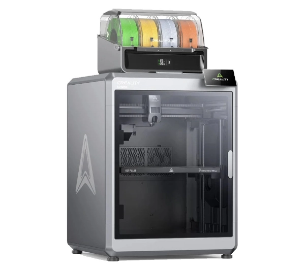 <h2>Drukarka 3D Creality K2 Plus Combo</h2><p>Twórz profesjonalne wydruki 3D bez wysiłku! Creality K2 Plus to zaawansowana drukarka 3D, która spełni oczekiwania zarówno amatorów, jak i profesjonalistów. Imponujący obszar roboczy 350 x 350 x 350 mm, zaawansowane funkcje, takie jak system wielokolorowy CFS i inteligentne kamery AI, pozwalają na realizację nawet najbardziej wymagających projektów z niezwykłą precyzją i łatwością. Zestaw Combo obejmuje drukarkę K2 Plus wraz z systemem CFS, który usprawnia obsługę filamentów.</p> <h2>Efektywne zarządzanie filamentami</h2><p>Innowacyjny system Color Filament System (CFS) umożliwia jednoczesne korzystanie z 4 różnych filamentów, automatycznie rozpoznając je dzięki modułowi RFID i optymalizując parametry druku. Obsługuje szeroką gamę materiałów o średnicy 1,75 mm, takich jak PLA, PETG, ABS czy PLA-CF, co pozwala na elastyczne dopasowanie do indywidualnych potrzeb. Poprzez aktywny wyświetlacz LCD, system umożliwia monitorowanie temperatury i wilgotności, co sprzyja odpowiedniemu przechowywaniu filamentów. CFS posiada 4 wygodne sloty ze wskaźnikami LED, a jego zasilanie bezpośrednio z drukarki eliminuje konieczność korzystania z dodatkowych źródeł energii. Dzięki tej technologii możliwe jest tworzenie wielokolorowych modeli z zachowaniem precyzji i wygody pracy.</p> <h2>Przestrzeń robocza dla dużych modeli</h2><p>K2 Plus oferuje ogromny obszar wydruku, umożliwiając tworzenie dużych modeli w całości, bez konieczności dzielenia ich na mniejsze części. Idealnie sprawdza się w produkcji prototypów, dekoracji czy złożonych modeli architektonicznych.</p> <h2>Stabilność i niezawodność</h2><p>Solidna rama „Matrix” z odlewanego aluminium oraz podwójna oś Z z czterema prowadnicami liniowymi zapewniają stabilność i minimalizują wibracje podczas druku, co ma ogromne znaczenie, zwłaszcza przy tworzeniu skomplikowanych detali.</p> <h2>Dostosowana do pracy z różnymi filamentami</h2><p>Dzięki ogrzewanej komorze K2 Plus obsługuje szeroką gamę filamentów, takich jak PLA, ABS, PETG czy nylon. Opcjonalny system CFS pozwala drukować w 16 kolorach jednocześnie, otwierając przed Tobą nowe możliwości twórcze.</p> <h2>Ekstruder nowej generacji</h2><p>Zaawansowany ekstruder z bezpośrednim podawaniem filamentu gwarantuje nie tylko stabilność, ale też precyzję. Dla użytkowników, którzy lubią stosować różnorodne materiały, nie bez znaczenia jest dysza o temperaturze do 350°C. Jej szybka wymiana ułatwia konserwację.</p> <h2>Inteligentne monitorowanie i automatyczne poziomowanie</h2><p>Podwójne kamery AI śledzą proces druku w czasie rzeczywistym, identyfikując potencjalne problemy, takie jak zatory w dyszy. Ale to nie koniec ułatwień! Automatyczne poziomowanie stołu zapewnia idealnie gładką pierwszą warstwę, oszczędzając nie tylko Twój czas, ale też materiał!</p> <h2>Wydajność i cicha praca</h2><p>Zaawansowany system napędowy pozwala na druk z prędkością do 600 mm/s i przyspieszeniem 30 000 mm/s², przy jednoczesnym zachowaniu cichej pracy na poziomie 45 dB. Dzięki temu nie zakłóca spokoju, idealnie sprawdzając się w biurze, a nawet w domu.</p> <h2>Precyzja i wygoda</h2><p>Creality K2 Plus wyposażono w zaawansowany system, który usprawnia proces drukowania. Automatyczne cięcie filamentu eliminuje konieczność ręcznego przycinania, zapewniając płynność pracy. Dodatkowo aktywne napinanie pasów gwarantuje precyzyjny ruch głowicy, co przekłada się na doskonałą jakość wydruków nawet przy dużych prędkościach.</p> <h2>Intuicyjna i szybka obsługa</h2><p>Drukarka K2 Plus jest gotowa do użycia zaraz po rozpakowaniu. Proces kalibracji został uproszczony, dzięki czemu nawet początkujący użytkownik poradzi sobie z przygotowaniem urządzenia do pracy. Wbudowany czytnik RFID automatycznie rozpoznaje rodzaj filamentu i dobiera odpowiednie ustawienia, co minimalizuje ryzyko błędów i pozwala skrócić czas przygotowań do druku.</p> <h2>Wszechstronne oprogramowanie</h2><p>Wbudowany moduł Wi-Fi oraz aplikacja Creality Cloud zapewniają pełną kontrolę nad drukarką na odległość, umożliwiając wygodne monitorowanie i zarządzanie procesem druku. System Creality OS pozwala na efektywne zarządzanie różnorodnymi filamentami, a tryb eksperta daje dostęp do zaawansowanych ustawień. Dla jeszcze większej elastyczności możesz korzystać z interfejsu FLUIDD WebUI, a oprogramowanie Creality Print 5.0 obsługuje zarówno pliki Gcode, jak i 3MF, oferując szerokie możliwości konfiguracji parametrów druku. Intuicyjność obsługi zwiększa 4,3-calowy ekran dotykowy, który umożliwia szybkie i wygodne wprowadzanie ustawień.</p> <h2>W trosce o Twoje bezpieczeństwo</h2><p>Wbudowany oczyszczacz powietrza eliminuje lotne związki organiczne, dzięki czemu urządzenie jest bezpieczne do użytku w zamkniętych pomieszczeniach. Co istotne, konstrukcja drukarki spełnia najwyższe standardy bezpieczeństwa.</p>