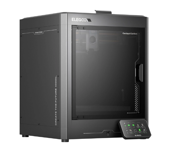 <h2>Drukarka 3D ELEGOO Centauri Carbon</h2><p>ELEGOO Centauri Carbon to urządzenie klasy premium, stworzone z myślą o inżynierach, projektantach i pasjonatach, którzy oczekują najwyższej jakości i niezawodności. Wyposażona w system kinematyki CoreXY, zamkniętą komorę z aktywnym grzaniem oraz konstrukcję opartą na solidnych materiałach, drukarka gwarantuje stabilność i precyzję, nawet przy skomplikowanych projektach. Maksymalna temperatura dyszy sięgająca 320°C i automatyczne poziomowanie to cechy, które zapewniają profesjonalne efekty niezależnie od użytego materiału czy stopnia zaawansowania modelu.</p> <h2>Solidna konstrukcja i szybki druk</h2><p>Model Centauri Carbon został zaprojektowany z myślą o pracy w intensywnym trybie. Stabilność zapewnia odlewana aluminiowa rama, wspierana przez cztery filary ze stopu aluminium oraz boczne panele ze stali nierdzewnej. Taka budowa pozwala osiągać prędkości druku do 500 mm/s, bez kompromisów w kwestii jakości, co znacząco skraca czas realizacji dużych projektów.</p> <h2>Komora grzewcza do zaawansowanych filamentów</h2><p>Zamknięta komora z kontrolowanym środowiskiem temperaturowym umożliwia pracę z szerokim spektrum filamentów, w tym z materiałami wymagającymi, takimi jak ABS, ASA, PA-CF, czy PETG-CF. Drukarka wspiera również elastyczne i standardowe tworzywa, dzięki czemu jest wszechstronna i doskonale sprawdza się zarówno w druku technicznym, jak i projektach o zwiększonej odporności mechanicznej.</p> <h2>Precyzyjny system chłodzenia</h2><p>Za utrzymanie optymalnej temperatury wewnątrz urządzenia odpowiada zaawansowany system wentylacji. Zintegrowane wentylatory modelowe, pomocnicze i zewnętrzne skutecznie chłodzą zarówno strefę druku, jak i cały korpus, co zapobiega deformacjom i gwarantuje idealne odwzorowanie nawet najdrobniejszych detali.</p> <h2>Niezawodne podawanie materiału</h2><p>Centauri Carbon korzysta z podwójnego ekstrudera wykonanego z hartowanej stali, który zapewnia płynne i precyzyjne podawanie filamentu, niezależnie od jego rodzaju. Automatyczny obcinak ułatwia zmianę materiału, redukuje ryzyko zatkania dyszy i zwiększa niezawodność całego procesu drukowania.</p> <h2>Technologia CoreXY – szybkość i jakość</h2><p>Zastosowanie mechaniki CoreXY sprawia, że urządzenie pracuje szybko i dokładnie, ograniczając masę ruchomych elementów, co poprawia precyzję i powtarzalność wydruków. To rozwiązanie szczególnie sprawdza się przy projektach wymagających dużej dynamiki i równomiernego ruchu głowicy.</p> <h2>Automatyczna kalibracja z zaawansowaną kompensacją</h2><p>Proces poziomowania stołu odbywa się automatycznie dzięki czujnikom nacisku i inteligentnemu systemowi kompensacji osi Z. Użytkownik nie musi dokonywać ręcznych ustawień – wystarczy jedno kliknięcie, by przygotować urządzenie do pracy, co znacznie ułatwia obsługę.</p> <h2>Monitoring wydruku i timelapse</h2><p>ELEGOO Centauri Carbon wyposażono w kamerę umożliwiającą rejestrowanie procesu drukowania w czasie rzeczywistym. Użytkownicy mogą monitorować przebieg pracy, identyfikować ewentualne błędy oraz tworzyć atrakcyjne materiały wideo typu timelapse, co jest szczególnie przydatne w celach edukacyjnych i przemysłowych.</p>