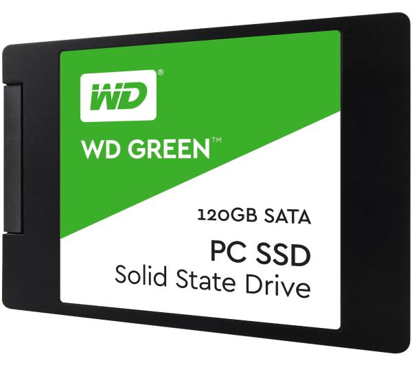 <h2>WD Green 2,5" 120GB</h2><p>Wydajny dysk SSD WD Green 2,5" do laptopów i komputerów stacjonarnych, zapewniający ultracichą pracę, odporny na uszkodzenia mechaniczne, niski pobór energii oraz 120 GB na dane.</p><h2>Poznaj WD Green</h2><a></a><h3>SZYBSZY KOMPUTER</h3><p>Poczuj, jak przyspiesza Twój laptop lub komputer stacjonarny, zamieniając stary dysk talerzowy HDD na wydajną konstrukcję SSD. WD Green 2,5" umożliwia odczyt aż do 545 MB/s, co oznacza błyskawiczne ładowanie systemu operacyjnego, płynną pracę z aplikacjami kreatywnymi oraz bezproblemowe odtwarzanie filmów w jakości 4K.</p><a></a><h3>PROJEKTY POD KONTROLĄ</h3><p>Szukasz sprzętu dla twórców? Z pomocą tego dysku SSD masz do dyspozycji niemalże 120 GB z szybkim transferem danych. Możesz więc sprawnie pracować z tekstem, zdjęciami, muzyką i nagraniami video, zapominając o uciążliwym hałasie. Wszystko dzięki wydajnej półprzewodnikowej konstrukcji, która nie zawiera ruchomych części.</p><a></a><h3>ENERGOOSZCZĘDNY</h3><p>WD Green 2,5" cechuje minimalny pobór energii elektrycznej, co sprzyja zarówno ochronie środowiska, jak i wydłużonej pracy z zasilaniem bateryjnym. Stanowią tym samym idealny wybór, jeśli chcesz w wygodny sposób korzystać z aplikacji biurowych bądź multimediów również podczas podróżowania.</p><h2>Dysk SSD WD Green z bliska</h2><h3>1 BEZAWARYJNA PRACA</h3><p>Zwarta konstrukcja SSD bez ruchomych elementów zwiększa odporność na uderzenia czy wibracje, by Twoje dane pozostały bezpieczne.</p><h3>2 KOMPAKTOWY FORMAT</h3><p>Chcesz zmodernizować swój komputer? Standardowy rozmiar 2,5 cala pozwala na bezproblemowy montaż dysku zarówno w laptopach, jak i jednostkach stacjonarnych.</p><h3>3 ZWIĘKSZONE BEZPIECZEŃSTWO</h3><p>Zapomnij o kłopotach, wykonując kopię zapasową systemu operacyjnego. Zrobisz to z pomocą oprogramowania Acronis udostępnianego wraz z WD Green 2,5".</p><h2>W opakowaniu WD Green</h2><h6>1Dysk SSD</h6><h2>Western Digital – marka godna zaufania</h2><p>3 lata gwarancji</p><p>Jeden z największych na świecie producentów dysków twardych</p><p>Ponad 50 lat doświadczenia w rozwoju technologii</p>