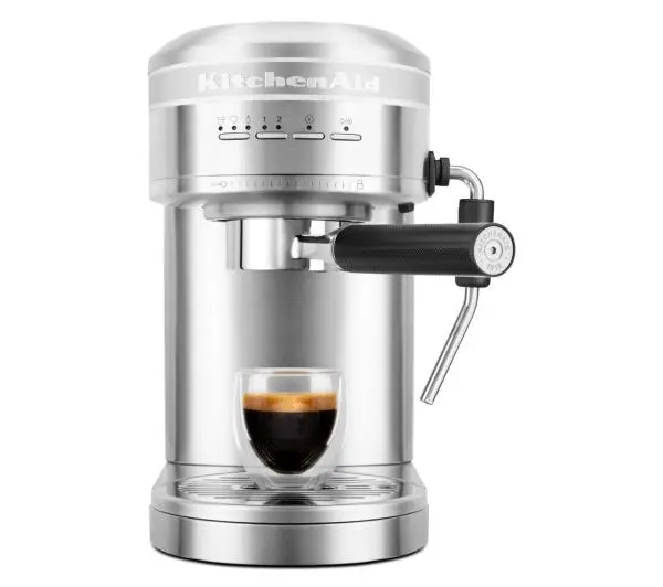 <h2>KitchenAid Artisan 5KES6503ESX (inox)</h2>KitchenAid Artisan 5KES6503ESX to kolbowy ekspres ciśnieniowy, za pomocą którego przygotujesz nie tylko aromatyczne czarne kawy, ale również wyczarujesz mleczne cappuccino, latte czy macchiato. W urządzeniu znajdziesz bowiem praktyczną dyszę umożliwiającą tworzenie mlecznej piany.Parzenie kawy pod ciśnieniem 15 barów – dla doskonale aromatycznego i pełnego smaku naparu2 czujniki dbają o optymalną temperaturę wody zapewniającą najlepsze efekty parzeniaMożliwość przygotowania jednej lub dwóch filiżanek espresso jednocześniePortafiltr z płaską podstawą ułatwia ubijanie kawy w kolbieUmieszczone na górze ekspresu filiżanki są podgrzewane, co pomaga w zachowaniu idealnej temperatury kawy<h2>Poznaj ekspres ciśnieniowy KitchenAid Artisan 5KES6503ESX</h2> System grzewczy ThermocoilChcesz za każdym razem przygotowywać wyjątkowo aromatyczną i pełną smaku kawę – jak z ulubionej kawiarni? W takim razie wyposaż swoją kuchnię w ekspres ciśnieniowy KitchenAid Artisan 5KES6503ESX, w którym zastosowano nowoczesny system grzewczy Thermocoil. Zapewnia on stałą, odpowiednio dobraną temperaturę wody, dzięki czemu masz pewność, że Twoje ulubione napary zawsze są przyrządzane w optymalnych warunkach. Również do mlecznych kawKochasz mocne espresso i lżejszą małą czarną w przerwach od pracy, ale czasami masz ochotę na kawę z dodatkiem mleka? Z urządzeniem KitchenAid Artisan 5KES6503ESX możesz łatwo przygotować wszystkie popularne napoje, jak latte, cappuccino czy macchiato! W ekspresie ciśnieniowym zastosowana została specjalna dysza służąca do tworzenia mlecznej pianki – przygotuj jej tyle, ile Ci trzeba i serwuj zawodowe kawy mleczne sobie i swoim bliskim! Funkcjonalny portafiltrKitchenAid Artisan 5KES6503ESX to kolbowy model ekspresu ciśnieniowego. Oznacza to, że przed każdym przygotowaniem kawy należy wsypać odpowiednią ilość zmielonych ziaren do portafiltra, ubić je i dopiero umieścić w odpowiednim miejscu urządzenia. W tym przypadku kolba ma standardową średnicę 58 mm i płaskie dno, za sprawą którego można stabilnie umieścić portafiltr na desce do krojenia czy też kuchennym blacie na czas ubijania kawy. Parzenie pod wysokim ciśnieniemW modelu KitchenAid Artisan 5KES6503ESX umieszczona została wysokiej klasy włoska pompa ciśnieniowa, która pozwala na parzenie kawy pod ciśnieniem 15 barów. To właśnie takie rozwiązanie pozwala wydobyć ze zmielonych ziaren kawy pełnię smaku i aromatu. Dzięki wysokiemu ciśnieniu na kawie powstaje także delikatna, kremowa pianka, a sam proces zajmuje tylko chwilę. Programowanie ilości wodyMasz swój przepis na ulubioną kawę? Wykorzystaj go także w urządzeniu KitchenAid Artisan 5KES6503ESX. Ilość wody, jaką chcesz użyć do parzenia kawy, możesz samodzielnie regulować. Podczas programowania po prostu przygotuj taką ilość espresso, jaka jest dla Ciebie odpowiednia i zatrzymaj pracę ekspresu – następne kawy będą robione zgodnie z Twoimi wytycznymi. Funkcjonalne czujnikiChcesz mieć pewność, że kawa przygotowana w ekspresie ciśnieniowym KitchenAid Artisan 5KES6503ESX zawsze będzie zaparzona z najwyższą precyzją? Da Ci ją zastosowany w prezentowanym modelu zestaw 2 czujników temperatury! Dbają one, aby temperatura wody była idealnie dopasowana do parzenia kawy, czego efektem są pełne smaku napary! Herbata na życzenieMasz ochotę na americano albo rozpuszczalną, gorącą czekoladę? Nie musisz gotować wody w czajniku – skorzystaj z urządzenia KitchenAid Artisan 5KES6503ESX i przygotuj ulubiony napój. Ekspres oferuje funkcję gorącej wody o temperaturze 92-92°C, więc za jego pomocą zaparzysz także niektóre rodzaje herbat. Zestaw sitekWraz z urządzeniem KitchenAid Artisan 5KES6503ESX otrzymasz 4 koszyki do parzenia espresso – dwa z sitek mają pojedynczą ściankę, a pozostałe dwa podwójną. Dzięki temu możesz testować różne sposoby parzenia kawy i odnaleźć ten, który najbardziej Ci odpowiada, a także przygotować pojedyncze lub podwójne espresso z optymalnej ilości zmielonej kawy. Trwała obudowaWybierz ekspres ciśnieniowy, który Cię nie zawiedzie! Postaw na model KitchenAid Artisan 5KES6503ESX, którego obudowa została wykonana z metalu. Dzięki temu cechuje się wysoką odpornością na uderzenia i inne uszkodzenia mechaniczne i na długi czas zachowuje swój efektowny wygląd. To solidny sprzęt, który sprawdzi się w każdej kuchni. Podgrzewacz filiżanekZazwyczaj delektujesz się kawą przez kilkanaście minut, zanim wypijesz ją w całości? W takim razie z pewnością Ci zależy na tym, by starannie przygotowany napar zachował swoją temperaturę jak najdłużej. Aby tak się stało, skorzystaj z podgrzewacza filiżanek wbudowanego w urządzenie KitchenAid Artisan 5KES6503ESX. Ścianki naczyń zyskują wyższą temperaturę, dlatego nie powodują natychmiastowego schładzania nalewanych do nich napojów. Kawa solo czy w duecie?Poranne rytuały zazwyczaj wykonujesz samodzielnie? A może dzielisz je ze swoją drugą połówką? Ekspres ciśnieniowy KitchenAid Artisan 5KES6503ESX sprawdzi się w obu sytuacjach, ponieważ za jego pomocą możesz przygotować za jednym razem jedno lub dwa espresso. W związku z tym możesz łatwo uniknąć kłótni o to, kto jako pierwszy otrzyma budzący do życia napar, a zamiast tego będziesz się delektować ulubionym napojem z ukochaną osobą.<h2>W opakowaniu KitchenAid Artisan 5KES6503ESX</h2>W opakowaniu Ekspres do kawy (inox) Stalowy portafilter 58 mm 4 koszyki do parzenia espresso Dysza parowa Dzbanek do mleka 350ml Miarka do kawy Stalowy tamper Zbiornik na wodę 1,4L Tacka ociekowa ze stalową płytkąKitchenAid – marka godna zaufaniaWieloletnie doświadczenieHistoria marki sięga 1886 rokuPionier w swojej dziedzinieJeden z liderów w produkcji małego i dużego sprzętu AGD do kuchniDoceniana jakośćMarka j