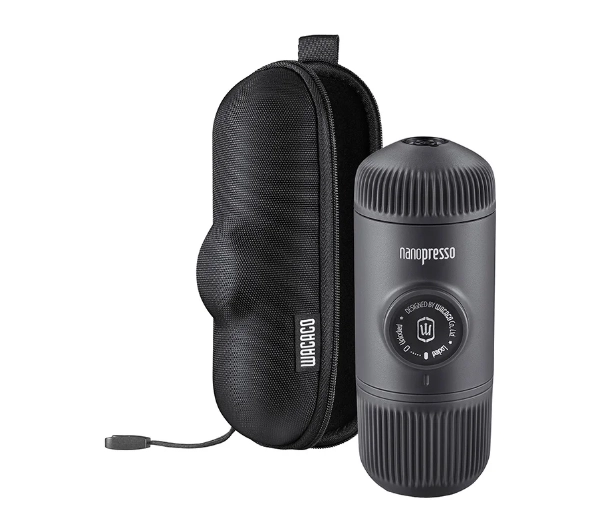 <h2>Przenośny ekspres do kawy WACACO Nanopresso (szary) + Etui</h2><p>Nanopresso to idealna propozycja dla miłośników espresso, którzy chcą delektować się ulubioną kawą niezależnie od miejsca. Ten kompaktowy ekspres pozwala przygotować aromatyczne espresso zarówno w domu, w pracy, jak i podczas podróży, wypraw czy biwaków. Do przygotowania kawy potrzebujesz jedynie gorącej wody, zmielonej kawy i kilku chwil. W zamian otrzymujesz intensywny smak i aromat świeżo zaparzonego espresso zawsze wtedy, gdy masz na to ochotę.</p><h2>Ciśnienie jak w prawdziwym ekspresie</h2><p>Nanopresso wykorzystuje innowacyjny, opatentowany system pompowania, który pozwala osiągnąć ciśnienie aż 18 barów. Dzięki temu możliwa jest skuteczna ekstrakcja kawy, porównywalna z profesjonalnymi ekspresami. Efektem jest bogaty smak, wyraźny aromat oraz gęsta, kremowa crema na powierzchni espresso. Każda filiżanka przygotowana w ten sposób przypomina kawę serwowaną w dobrej kawiarni.</p><h2>Stworzony z myślą o podróżach</h2><p>Niewielka waga wynosząca zaledwie 336 g oraz długość 15,6 cm sprawiają, że Nanopresso bez trudu zmieści się w torbie lub plecaku. Dzięki kompaktowej konstrukcji świetnie sprawdza się w podróży, podczas wycieczek czy codziennych dojazdów do pracy. Solidna obudowa zapewnia trwałość i odporność na intensywne użytkowanie. To praktyczny towarzysz dla każdego, kto nie chce rezygnować z dobrej kawy poza domem.</p><h2>Działa wszędzie – bez kabli i baterii</h2><p>Ekspres działa całkowicie ręcznie, dlatego nie wymaga dostępu do prądu ani baterii. Takie rozwiązanie daje pełną swobodę korzystania z urządzenia w dowolnym miejscu – na łonie natury, w podróży czy podczas górskiej wyprawy. Wystarczy gorąca woda i kilka ruchów pompką, aby przygotować świeże espresso. To praktyczne i ekologiczne rozwiązanie dla mobilnych miłośników kawy.</p><h2>Prosta obsługa na co dzień</h2><p>Korzystanie z Nanopresso jest intuicyjne i nie wymaga specjalnych umiejętności. Konstrukcja urządzenia została zaprojektowana tak, aby proces przygotowania kawy był szybki i wygodny. Ekspres można łatwo rozłożyć, co znacznie ułatwia jego czyszczenie. Dzięki temu przygotowanie kolejnej filiżanki kawy zajmuje tylko chwilę.</p><h2>Rozszerz możliwości parzenia</h2><p>Nanopresso można dopasować do własnych preferencji dzięki dodatkowym akcesoriom. Dostępny adapter NS (Nespresso System, system kapsułek Nespresso) pozwala korzystać z kapsułek Nespresso®, Barista Kit umożliwia przygotowanie podwójnego espresso lub większej porcji kawy, a zestaw DG (Dolce Gusto, system kapsułek Dolce Gusto) współpracuje z kapsułkami Dolce Gusto®. Dzięki temu jeden kompaktowy ekspres może oferować wiele sposobów parzenia. To wszechstronne rozwiązanie dla każdego fana dobrej kawy.</p>