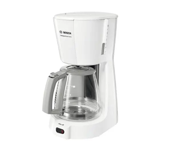 <h2>Bosch CompactClass TKA3A031</h2><p>Pyszna kawa dla całej rodziny? Z Boschem CompactClass TKA3A031 jest to możliwe! Przygotuj cały dzbanek kawy, by wszyscy domownicy mogli się nią delektować!</p><h2>Poznaj Bosch CompactClass TKA3A031</h2><a></a><h3>POJEMNY DZBANEK</h3><p>Ekspres przelewowy Bosch CompactClass TKA3A031 to niezbędne urządzenie w kuchniach, z których korzysta kilka osób. Możesz w nim bowiem przygotować jednorazowo aż 1,25 l kawy, co okaże się wystarczającą ilością np. przy rodzinnym śniadaniu.</p><a></a><h3>BLOKADA KAPANIA</h3><p>Kawa jeszcze nie skończyła się parzyć, ale chcesz już nalać sobie do filiżanki jej pierwszą porcję? Weź dzbanek i nie obawiaj się, że napój zacznie wypływać na płytę grzewczą – uniemożliwi mu to blokada kapania stworzona właśnie z myślą o takich sytuacjach.</p><a></a><h3>WYŁĄCZENIE PO 2 GODZINACH</h3><p>Chcesz, by kawa w dzbanku była podgrzewana po zaparzeniu, ale jednocześnie nie chcesz zapomnieć o wyłączeniu Boscha CompactClass TKA3A031? Prezentowany ekspres wyłączy się sam po 2 godzinach użytkowania, więc nie musisz się przejmować marnowaniem prądu.</p><a></a><h3>SAFESOTRAGE</h3><p>W prezentowanym ekspresie do kawy wszystko jest na swoim miejscu. Dzięki rozwiązaniom zapewniającym bezpieczne przechowywanie elementów i akcesoriów urządzenia – m.in. schowek na uchwyt dzbanka.</p><a></a><h3>CHOWANY KABEL</h3><p>Przewód w urządzeniu Bosch CompactClass TKA3A031 jest chowany, dzięki czemu łatwiej możesz zachować porządek w swojej kuchni. Wysuń tylko tyle kabla, ile potrzebujesz do podłączenia ekspresu do prądu, a reszta niech pozostanie dyskretnie ukryta w podstawie.</p><a></a><h3>WYGODNE CZYSZCZENIE</h3><p>Dzięki uchylnemu uchwytowi filtra czyszczenie stanie się prostsze - możesz w łatwy sposób usunąć stary filtr z fusami, włożyć nowy, a także wyczyścić ścianki uchwytu od wewnątrz. W związku z tym codzienne korzystanie z urządzenia jest bardzo wygodne.</p><h2>Ekspres przelewowy Bosch CompactClass TKA3A031 z bliska</h2><h3>1 GORĄCA KAWA NA DŁUŻEJ</h3><p>W ekspresie przelewowym Bosch CompactClass TKA3A031 zastosowano płytę podgrzewającą dzbanek – masz więc dostęp do świeżej i gorącej kawy na dłużej.</p><h3>2 POJEMNIK NA WODĘ Z PODZIAŁKĄ</h3><p>Zanim zaczniesz parzyć kawę, upewnij się, że w ekspresie jest potrzebna do tego ilość wody – łatwo się o tym przekonasz, spoglądając na miarkę znajdującą się na zbiorniku.</p><h3>3 WŁĄCZNIK Z PODŚWIETLENIEM</h3><p>Przycisk służący do włączania i wyłączania Boscha CompactClass TKA3A031 jest podświetlany, abyś bez trudu mógł uruchomić ekspres nawet o poranku przy zgaszonym świetle.</p><h2>W opakowaniu Bosch CompactClass TKA3A031</h2><h6>1Ekspres przelewowy</h6><h6>2Dzbanek szklany</h6><h6>3Karta gwarancyjna</h6><h6>4Instrukcja obsługi w języku polskim</h6><h2>Bosch – marka godna zaufania</h2><p>Wieloletnie zaufanie konsumentów</p><p>Jeden z liderów na rynku małego i dużego AGD</p><p>Jakość potwierdzona certyfikatami oraz licznymi nagrodami</p>
