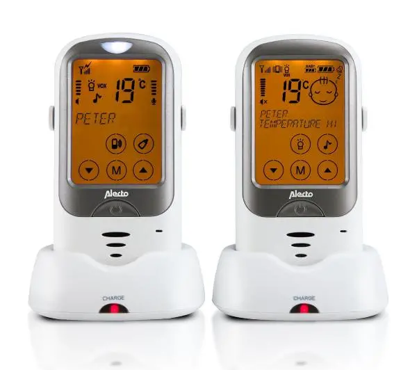 - Funkcje dodatkowe: alarm przypominający o podaniu lekarstw lub pokarmu, alarm wibracyjny w odbiorniku, dwustronna komunikacja, ekran dotykowy, kołysanki, mówienie do dziecka, termometr, wbudowany termometr