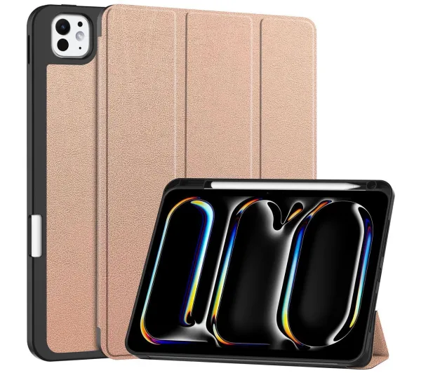 Etui na tablet Bizon Case Tab Lizard z klapką do iPad Pro 11" 2025 / 2024 Różowozłoty