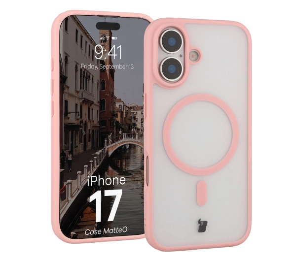 Etui Bizon MatteO z MagSafe do MatteO iPhone 17 Pink Półprzezroczyste z różową ramką