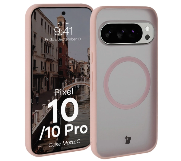 Etui Bizon MatteO z MagSafe do Google Pixel 10 / Google Pixel 10 Pro Półprzezroczyste z różową ramką