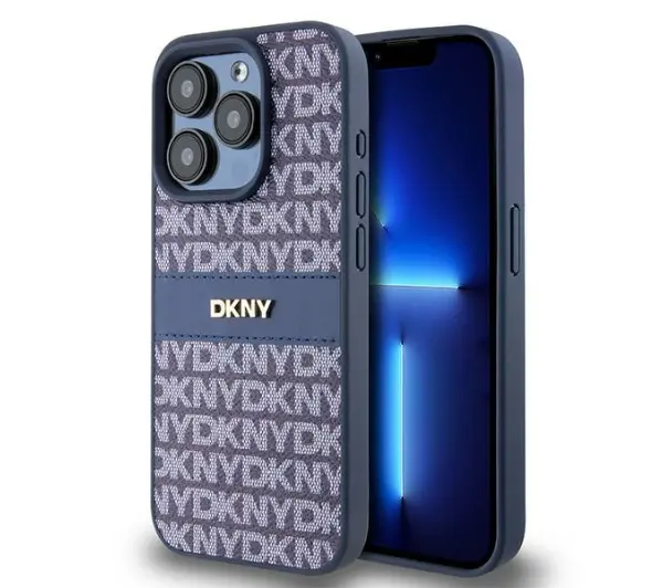 Etui DKNY Hardcase Leather Mono Stripe & Metal Logo iPhone 15 Pro NiebieskI