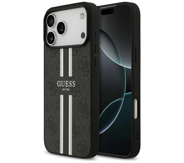 Etui Guess 4G Printed Stripes MagSafe do iPhone 17 Pro Max Czarny