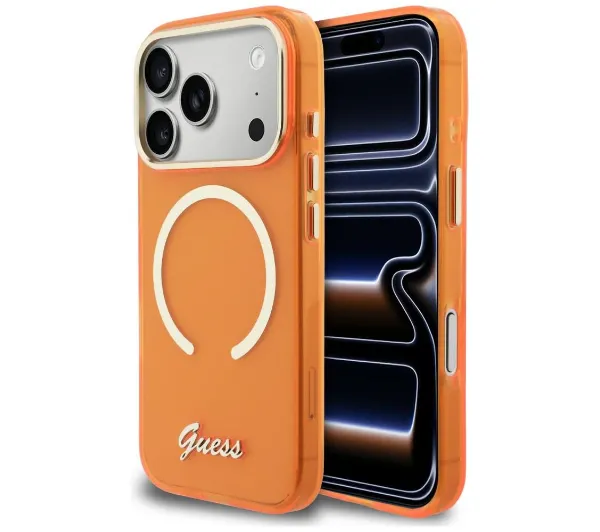 Etui Guess IML Script Metal MagSafe do iPhone 17 Pro Pomarańczowy