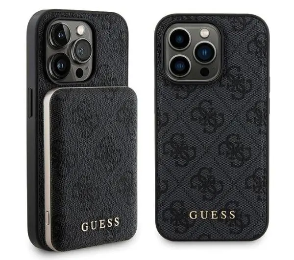 Etui Guess Zestaw do iPhone 15 Pro + Powerbank 5000mAh MagSafe 4G Metal Logo Czarny
