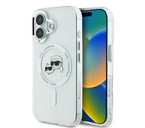 Etui Karl Lagerfeld IML Metal Karl&Choupette Head MagSafe do iPhone 16 Plus Biały