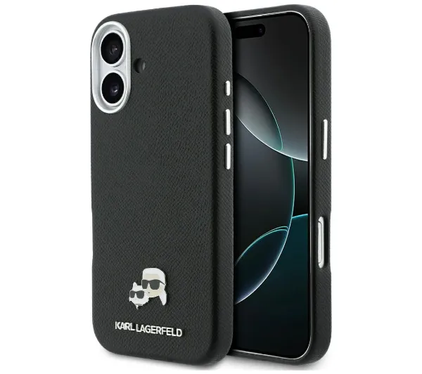 Etui Karl Lagerfeld Karl & Choupette Head Pins Saffiano MagSafe do iPhone 17 Czarny