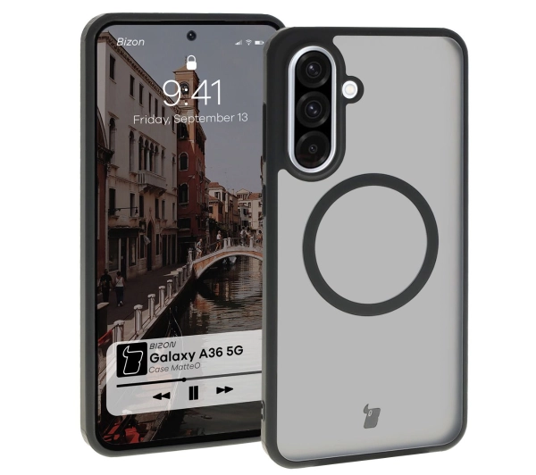 Etui Bizon MatteO z MagSafe do Galaxy A36 5G Półprzezroczyste z czarną ramką