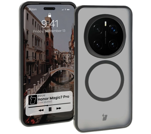 Etui Bizon MatteO z MagSafe do Honor Magic7 Pro Półprzezroczyste z czarną ramką
