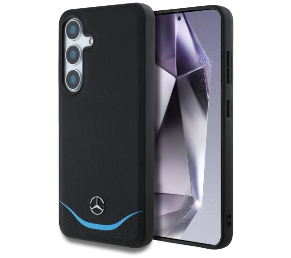 Etui Mercedes-Benz Leather Contrasted Blue Horizontal Curve MagSafe do Galaxy S25 Czarny