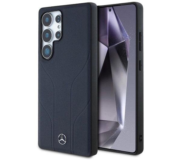 Etui Mercedes-Benz Leather Debossed Lines MagSafe do Galaxy S25 Ultra Niebieski