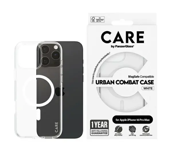 <p> </p><h3>Etui CARE by PanzerGlass Flagship Case MagSafe iPhone 16 Pro Max 6,9"</h3><h3>Niezrównana ochrona z ekskluzywnym designem</h3><p>Case Feature to wyjątkowe etui, które zapewnia Twojemu iPhone'owi doskonałą ochronę i stylowy wygląd. Wykonane z trwałych i wysokiej jakości materiałów, gwarantuje skuteczną ochronę przed zarysowaniami, wstrząsami oraz codziennymi uszkodzeniami. Dzięki temu etui Twój telefon pozostaje bezpieczny i wygląda elegancko każdego dnia.</p><h3>Ekologiczne podejście do ochrony</h3><p>W trosce o środowisko etui, zostało wykonane z materiałów pochodzących z recyklingu. To nie tylko wytrzymałe, ale także przyjazne dla planety etui, które pozwala chronić Twój telefon w sposób odpowiedzialny. Dzięki temu wybierasz produkt, który dba o bezpieczeństwo Twojego urządzenia i jednocześnie wspiera działania na rzecz ochrony środowiska.</p><h3>Innowacyjna technologia MagSafe</h3><p>Etui zostało zaprojektowane z myślą o pełnej kompatybilności z technologią MagSafe, co pozwala na wygodne i szybkie ładowanie bezprzewodowe. Wbudowane magnesy zapewniają pewne połączenie z ładowarką MagSafe oraz innymi akcesoriami, dzięki czemu możesz cieszyć się funkcjonalnością i praktycznością bez konieczności zdejmowania etui z telefonu.</p><table> <tbody> <tr> <td colspan="2"> <h3>Dane Techniczne</h3> </td> </tr> <tr> <td>Marka</td> <td>PanzerGlass</td> </tr> <tr> <td>Certyfikaty</td> <td>MIL-STD-810H</td> </tr> <tr> <td>Kolor</td> <td>Biały</td> </tr> <tr> <td>Seria</td> <td>Flagship Case MagSafe</td> </tr> <tr> <td>Kompatybilność</td> <td>iPhone 16 Pro Max 6,9"</td> </tr> </tbody></table>