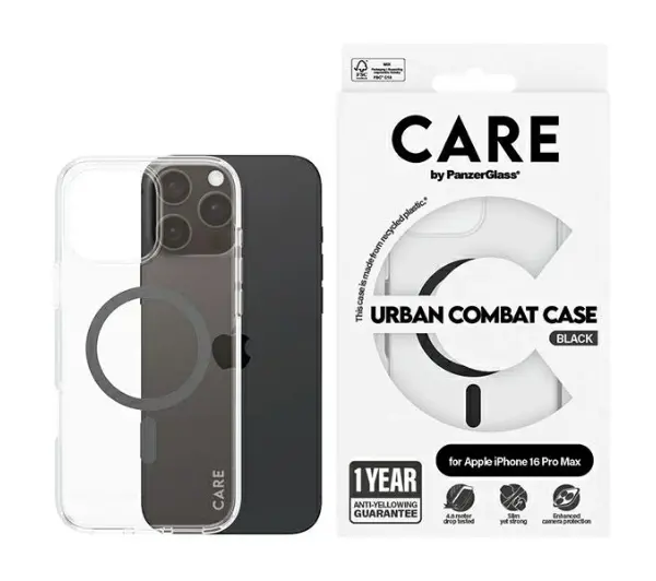 <p> </p><h3>Etui CARE by PanzerGlass Flagship Case MagSafe iPhone 16 Pro Max 6,9"</h3><h3>Niezrównana ochrona z ekskluzywnym designem</h3><p>Flagship Case MagSafe to wyjątkowe etui, które zapewnia Twojemu iPhone'owi doskonałą ochronę i stylowy wygląd. Wykonane z trwałych i wysokiej jakości materiałów, gwarantuje skuteczną ochronę przed zarysowaniami, wstrząsami oraz codziennymi uszkodzeniami. Dzięki temu etui Twój telefon pozostaje bezpieczny i wygląda elegancko każdego dnia.</p><h3>Ekologiczne podejście do ochrony</h3><p>To nie tylko doskonała ochrona, ale także dbałość o środowisko. Etui zostało stworzone z materiałów przyjaznych dla planety, podkreślając zaangażowanie marki w zrównoważony rozwój. Wybierając ten produkt, inwestujesz nie tylko w bezpieczeństwo swojego telefonu, ale także wspierasz ekologiczne rozwiązania.</p><h3>Innowacyjna technologia MagSafe</h3><p>Etui zostało zaprojektowane z myślą o pełnej kompatybilności z technologią MagSafe, co pozwala na wygodne i szybkie ładowanie bezprzewodowe. Wbudowane magnesy zapewniają pewne połączenie z ładowarką MagSafe oraz innymi akcesoriami, dzięki czemu możesz cieszyć się funkcjonalnością i praktycznością bez konieczności zdejmowania etui z telefonu.</p><table> <tbody> <tr> <td colspan="2"> <h3>Dane Techniczne</h3> </td> </tr> <tr> <td>Marka</td> <td>PanzerGlass</td> </tr> <tr> <td>Certyfikaty</td> <td>MIL-STD-810H</td> </tr> <tr> <td>Kolor</td> <td>Czarny</td> </tr> <tr> <td>Seria</td> <td>Flagship Case MagSafe</td> </tr> <tr> <td>Kompatybilność</td> <td>iPhone 16 Pro Max 6,9"</td> </tr> </tbody></table>