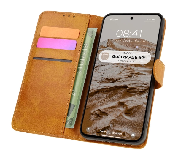 Etui Bizon z klapką Pocket do Galaxy A56 5G Brązowy