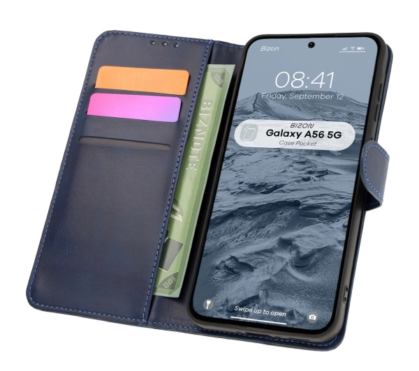 Etui Bizon z klapką Pocket do Galaxy A56 5G Granatowy
