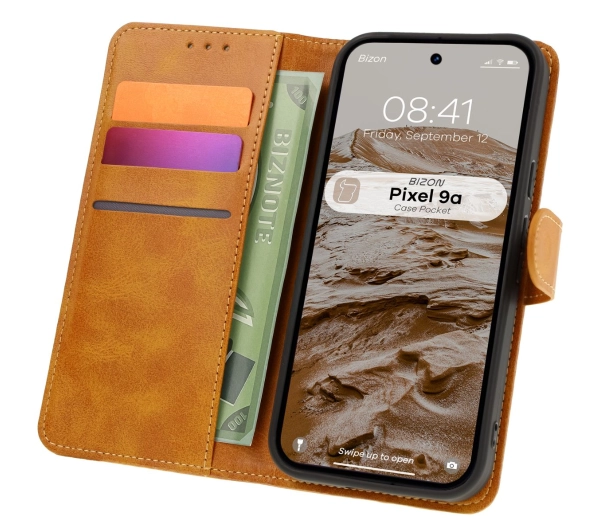 Etui Bizon z klapką Pocket do Google Pixel 9a Brązowy