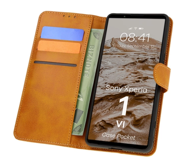 Etui Bizon z klapką Pocket do Sony Xperia 1 VI Brązowy