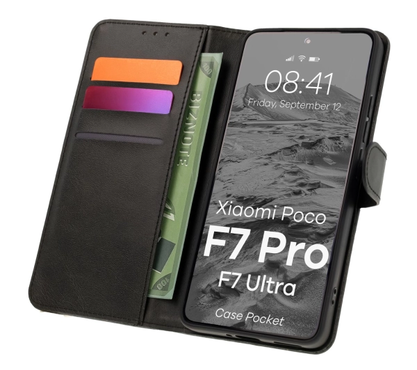 Etui Bizon z klapką Pocket do Xiaomi Poco F7 Pro/F7 Ultra Czarny