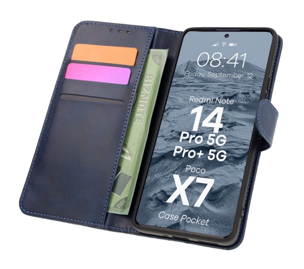 Etui Bizon z klapką Pocket do Xiaomi Redmi Note 14 Pro 5G/Poco X7 Granatowy