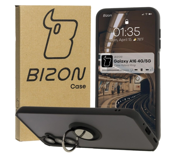 Etui Bizon z uchwytem na palec Hybrid Ring do Galaxy A16 4G/5G Przydymione z czarną ramką
