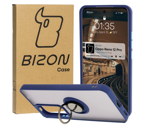 Etui Bizon z uchwytem na palec Hybrid Ring do Oppo Reno 12 Pro przydymione z Granatową ramką