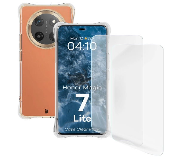 Zestaw ochronny Bizon elastyczne etui Salpa + 2x folia na ekran Clear Pack do Honor Magic7 Lite