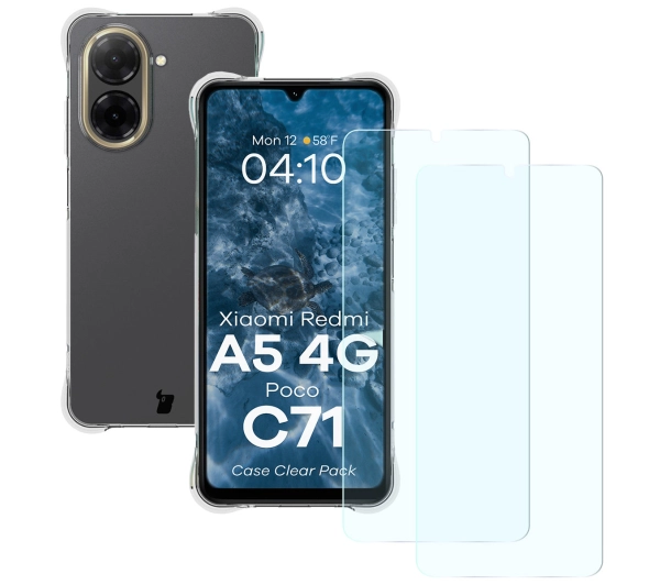 Zestaw ochronny Bizon elastyczne etui Salpa + 2x szkło hartowane Clear Pack do Xiaomi Redmi A5 4G / Xiaomi POCO C71 4G