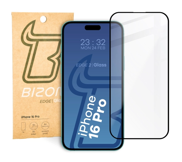 Szkło hartowane Bizon pełne Edge 2 do iPhone 16 Pro