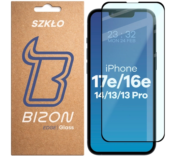 Szkło hartowane Bizon pełne Edge 2 do iPhone 16e/14/13/13 Pro/17e